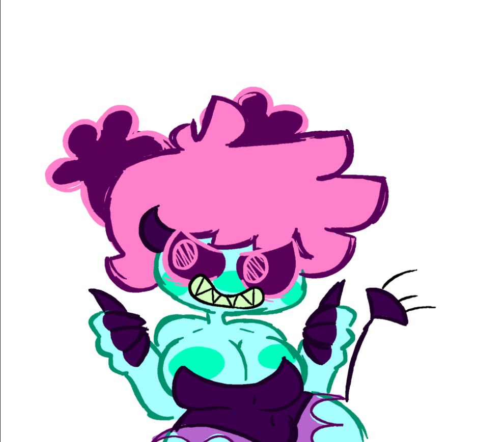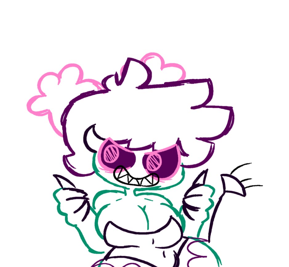what i do next can depend on what i'm drawing. for instance, a drawing of a character like parasomnia will probably proceed with doing the outline next, but a character like blu usually starts with flat colors and then outlines, because her design relies less on closed outlines.