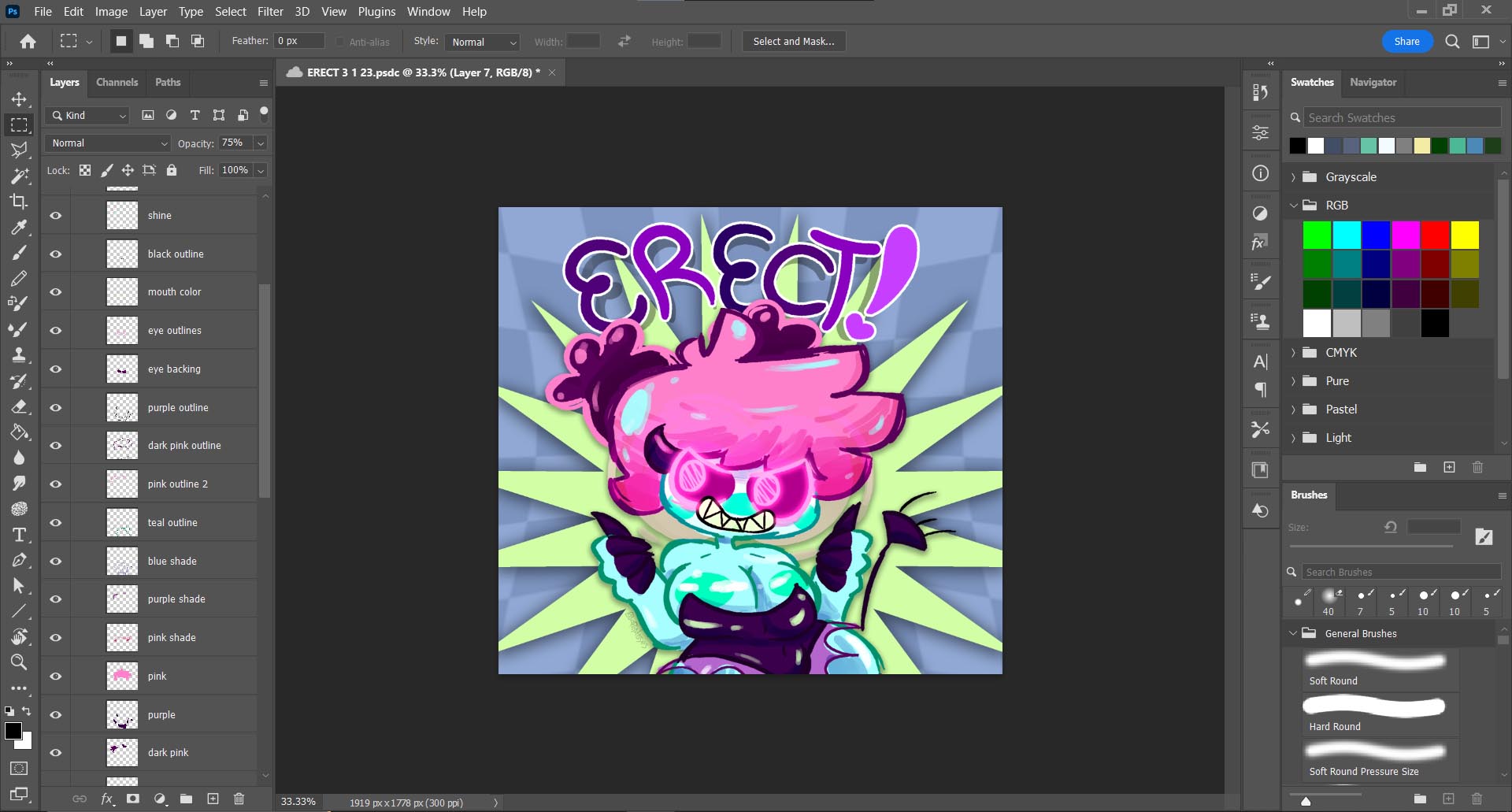 it is with much regret that i say that i'm still using photoshop to draw stuff, mainly because i automatically get a subscription to it from my school, and because it's what i've been using since i started doing digital art. at this point i'm kind of afraid of the notion of switching to a different program because i feel like i'd have to learn everything again so my art would go back to sucking complete ass for at least a little bit.