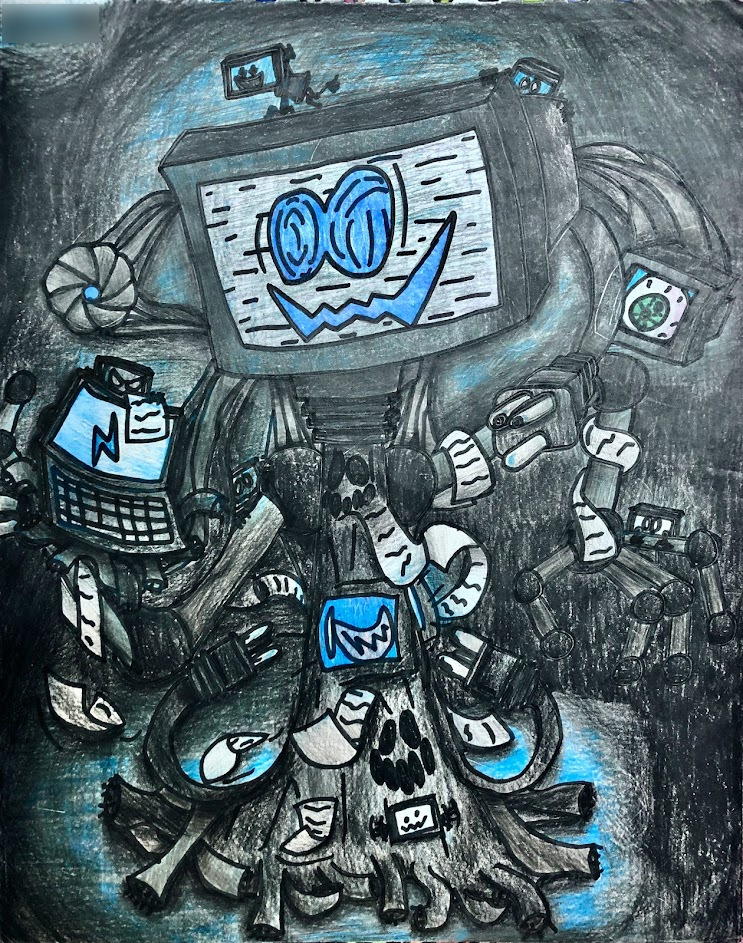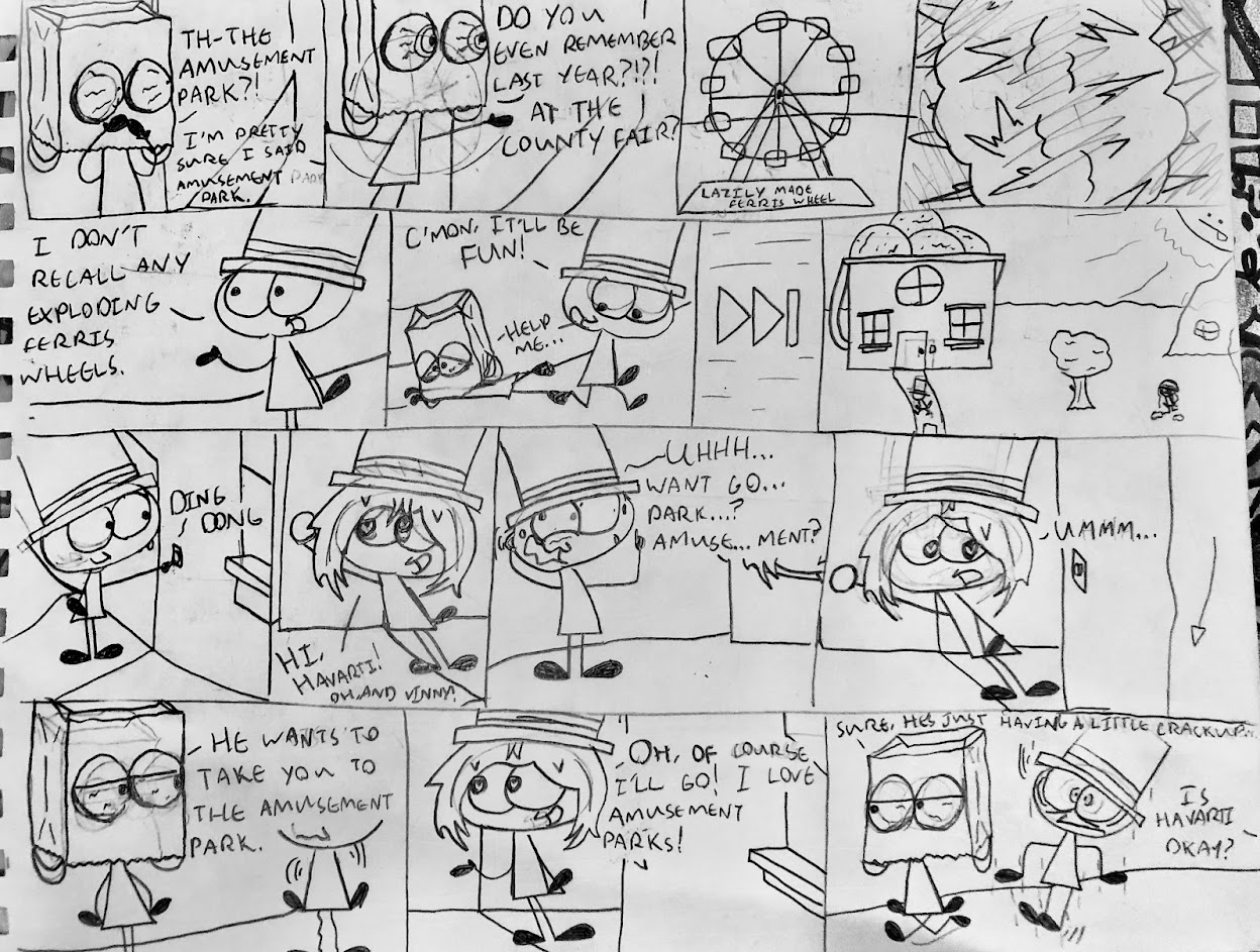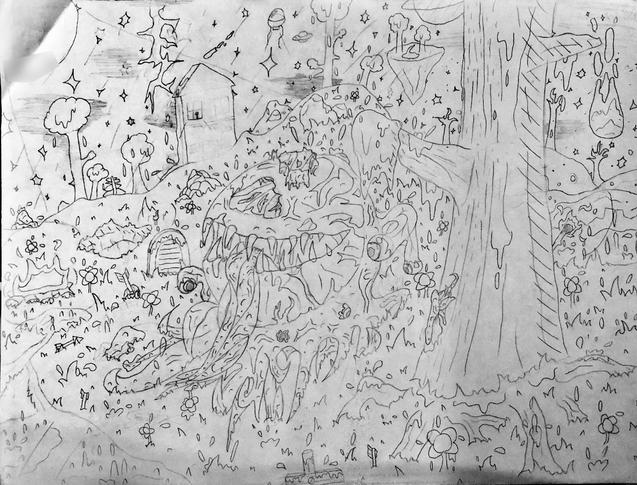 seventh grade is around when art sort of became my main interest. shortly after starting out with drawing fnaf fanart, i started using twitter and also discovered cartoons being uploaded to youtube by independent artists, both of which became large sources of inspiration (some people may be able to recognize one in particular that my art style at the time was blatantly ripping from). here you'll find old concept art, abandoned OCs, abstract stuff that i used to be really obsessed with creating, and some other stuff. i don't have any exact dates for this stuff, but i'm pretty sure all of it is from 2016 to 2017. some of my signatures have been blurred because i used to sign my real name on my art.