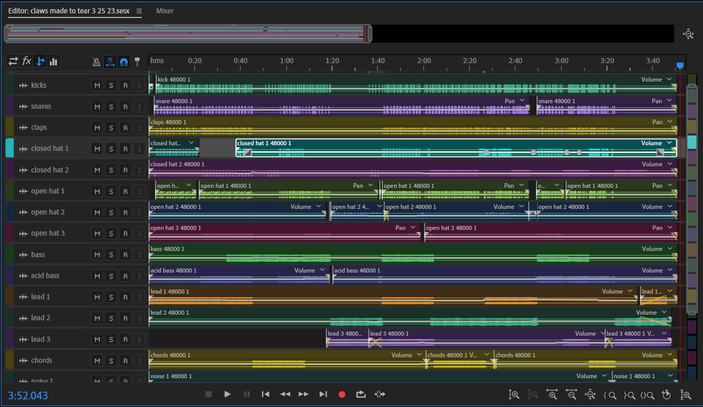 the majority of my plunderphonics work, specifically from flowerhold to you're never going home, was made with, believe it or not, sony vegas. i had no knowledge at the time of what a DAW was or what qualifies as one, but vegas offered enough effects to mess around with and the option to export audio files, so that was somehow good enough for me. manifest concept, however, was made using adobe audition, which is still probably not an ideal tool for composing music, and it's adobe so of course i feel bad for using it, but i guess it was still good enough for sample-based music.