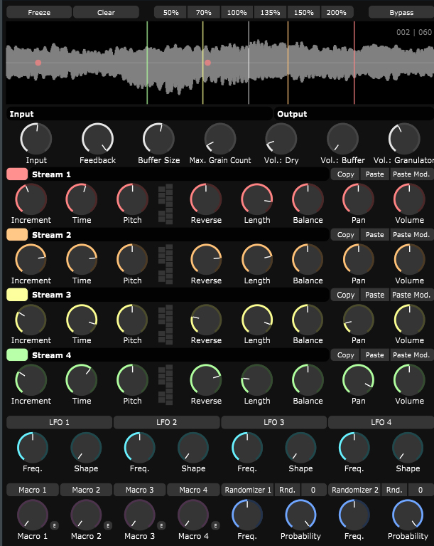 another kind of interesting one is emergence, which is a sort of granular feedback generator that is good for extra saucy delays and echoes. it can play back samples of the input audio at varying speeds, pitches, volumes and even reverse the sound and can have up to four layers of delays, each with individually tweakable paramaters.