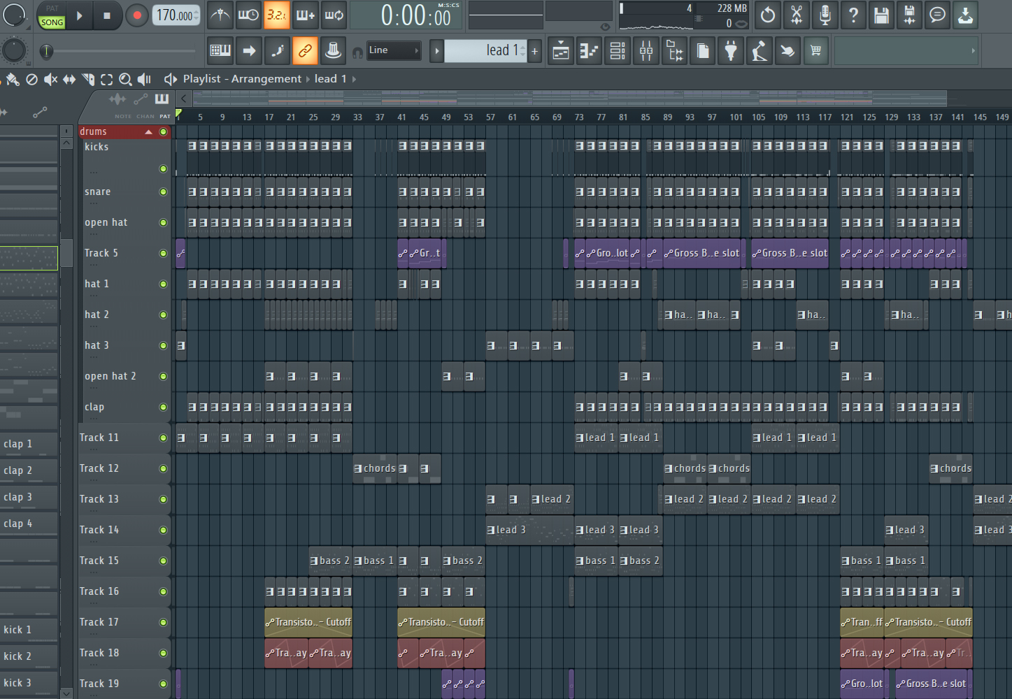 for drums, i tend to just use samples and/or preset-based plugins. my dad gave me a giant folder, roughly 1.4 GB in size, full of all kinds of breakbeats and isolated samples that i tend to plunder for drum sounds that i load into slicex or fruity slicer. i tend to prefer sampling live drums, or just stuff that has a unique sort of texture to it.