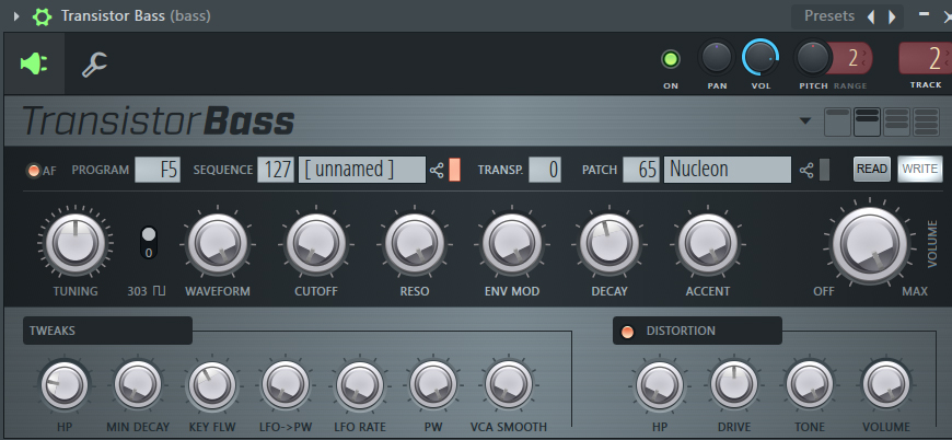 more recently, i've started to use transistor bass in some of my projects. it's a first-party FL plugin based on roland's tb-303 and i've heard a lot of acclaim for it sounding really close to the original. it was a bit weird figuring it out at first and i didn't immediately realize there's an option to disable the built-in sequencer but i would say i got it working pretty quickly as soon as i started trying to use it.
